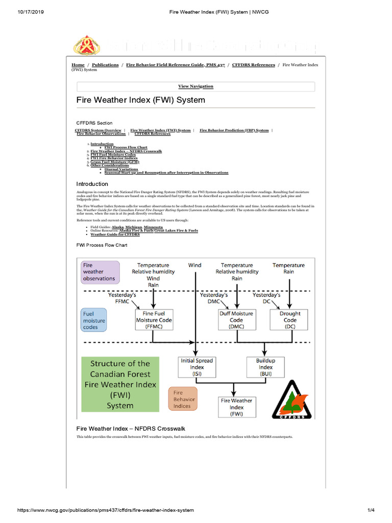 Fire Ics Chart CFFDRS Fire Weather Index FWI System NWCG