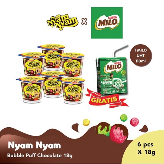 Jual NyamNyam Bubble Puff Chocolate 18 Gr X 6 Free Milo Uht 110Ml 1