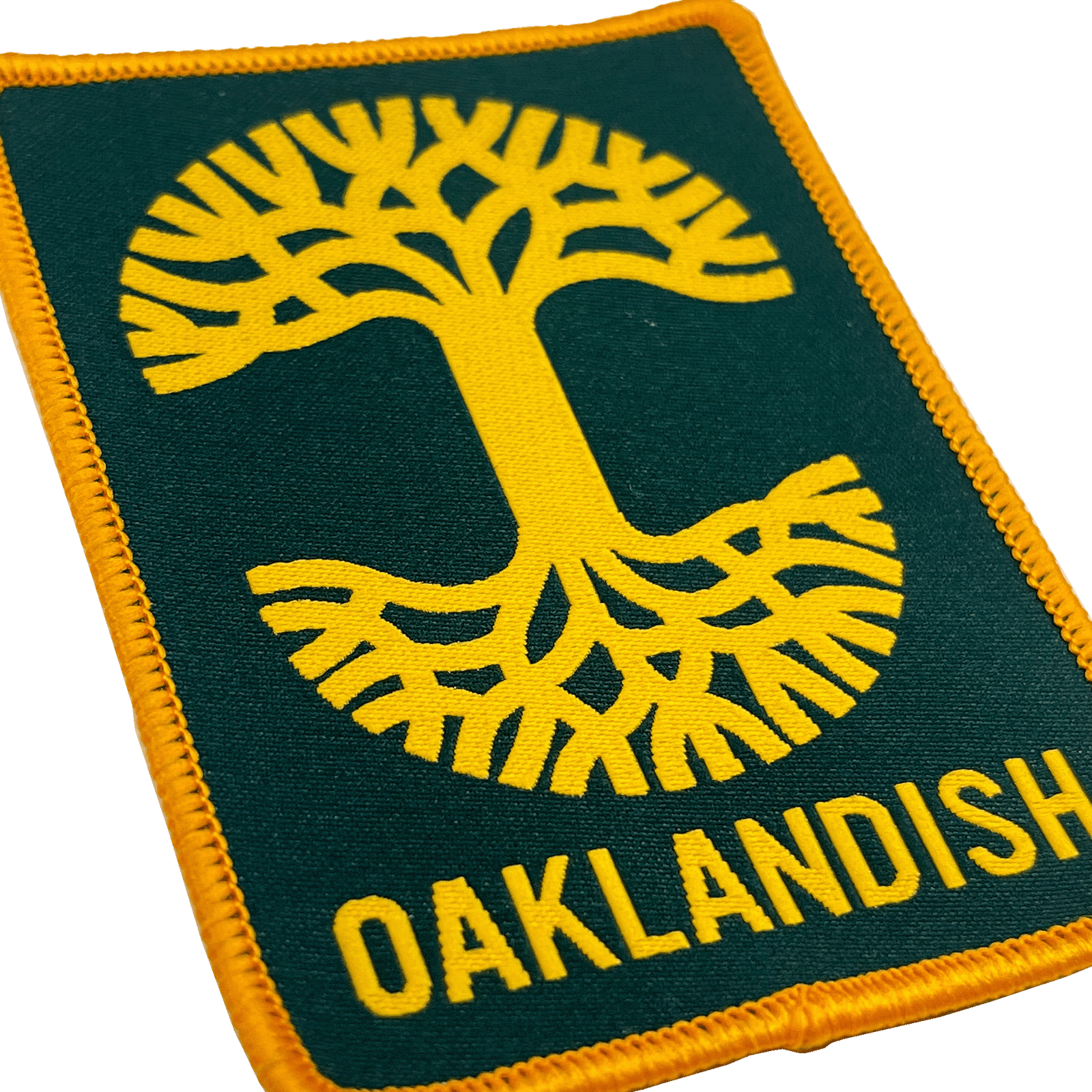 IronOn Patch Forest Green, Gold Oaklandish Tree Logo & Wordmark