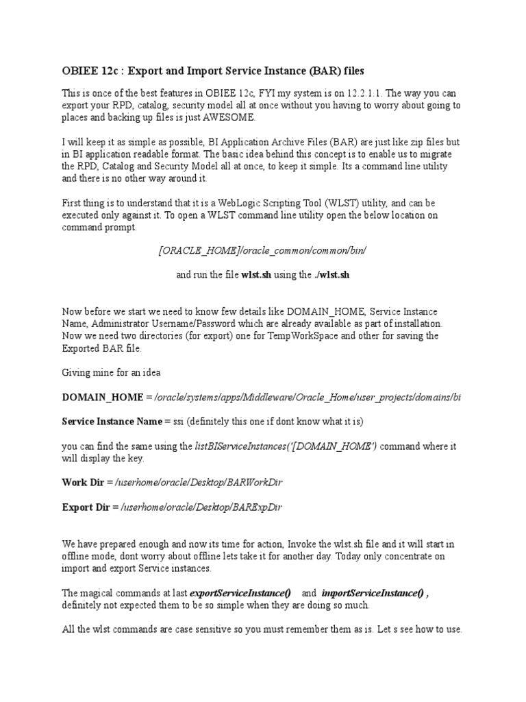 Obiee 12c BAR PDF Command Line Interface Utility Software