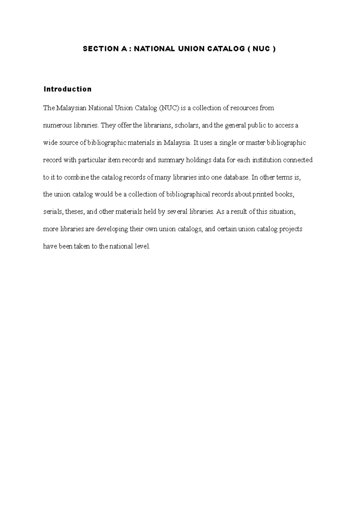 Report Section A IMD124 SECTION A NATIONAL UNION CATALOG ( NUC