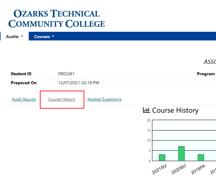 Course HIstory OTC Registrar