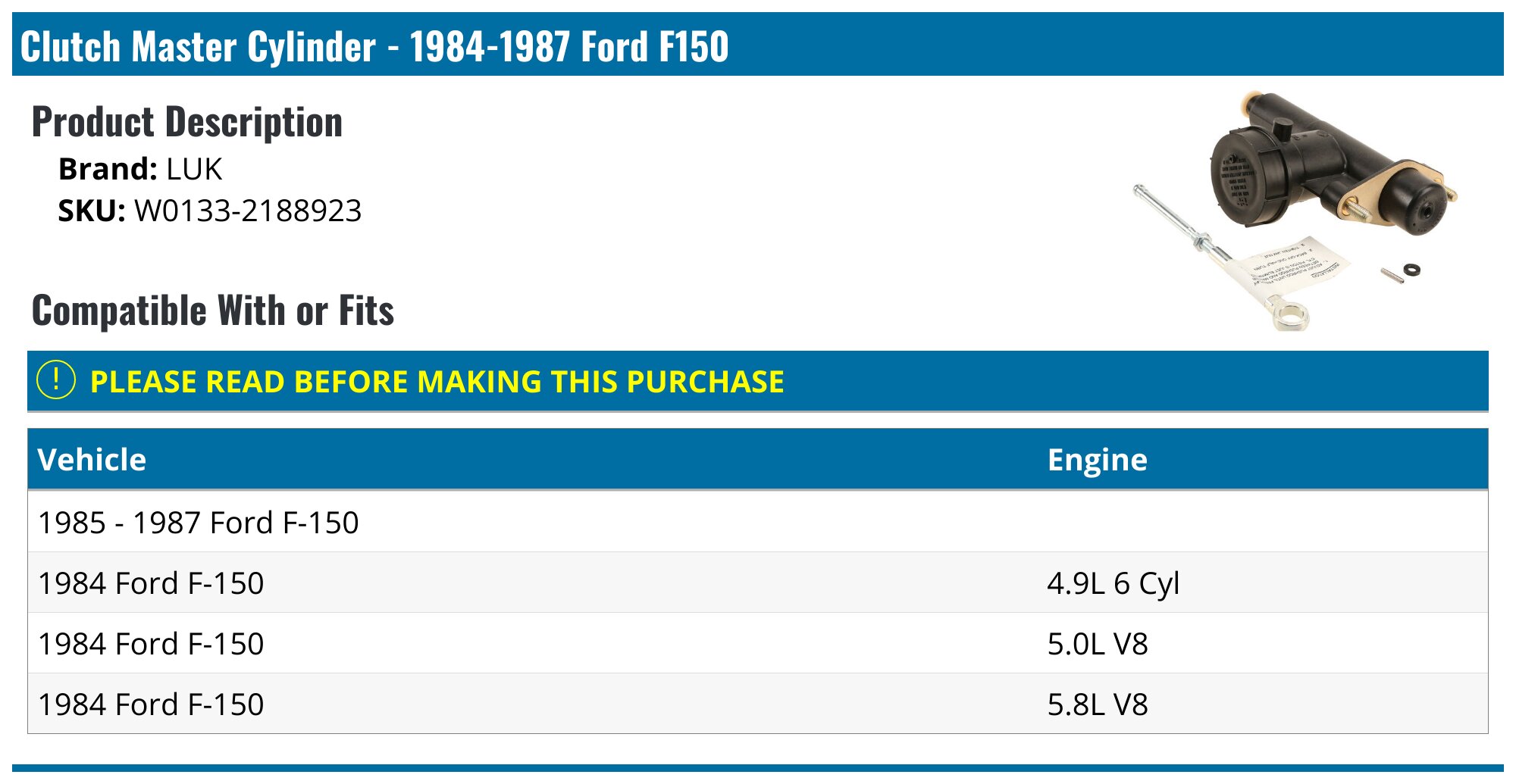 19841987 Ford F150 Clutch Master Cylinder LUK W01332188923