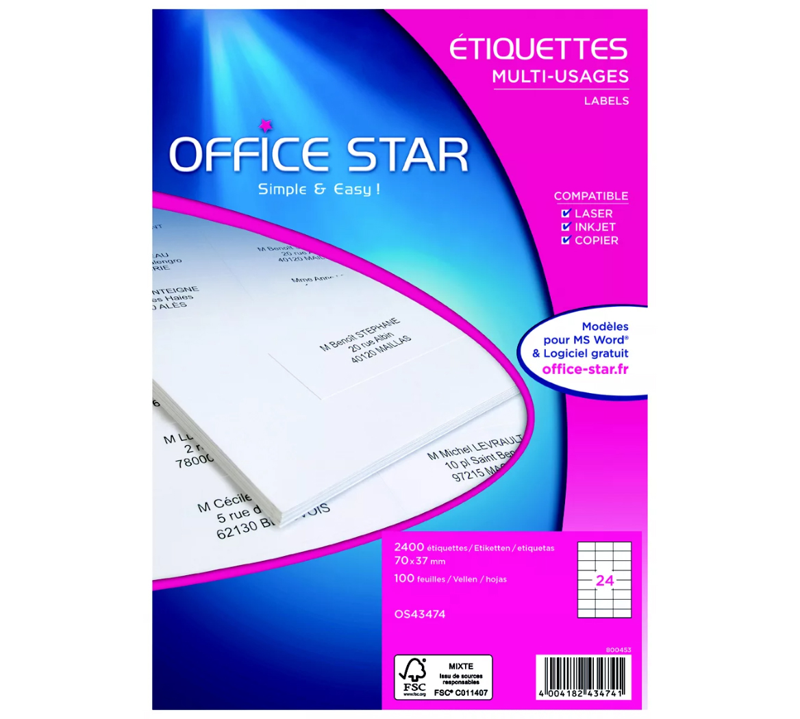 Office Star 2400 Étiquettes multiusages blanches 70 x 37 mm réf