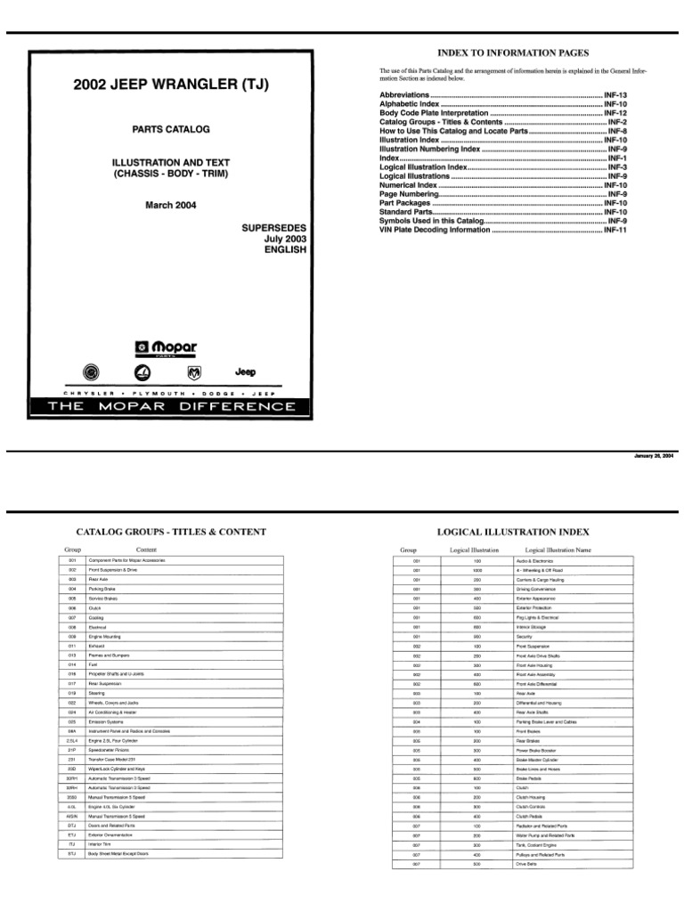 2002 Jeep Wrangler TJ PartsCatalog Manual PDF DOWNLOAD