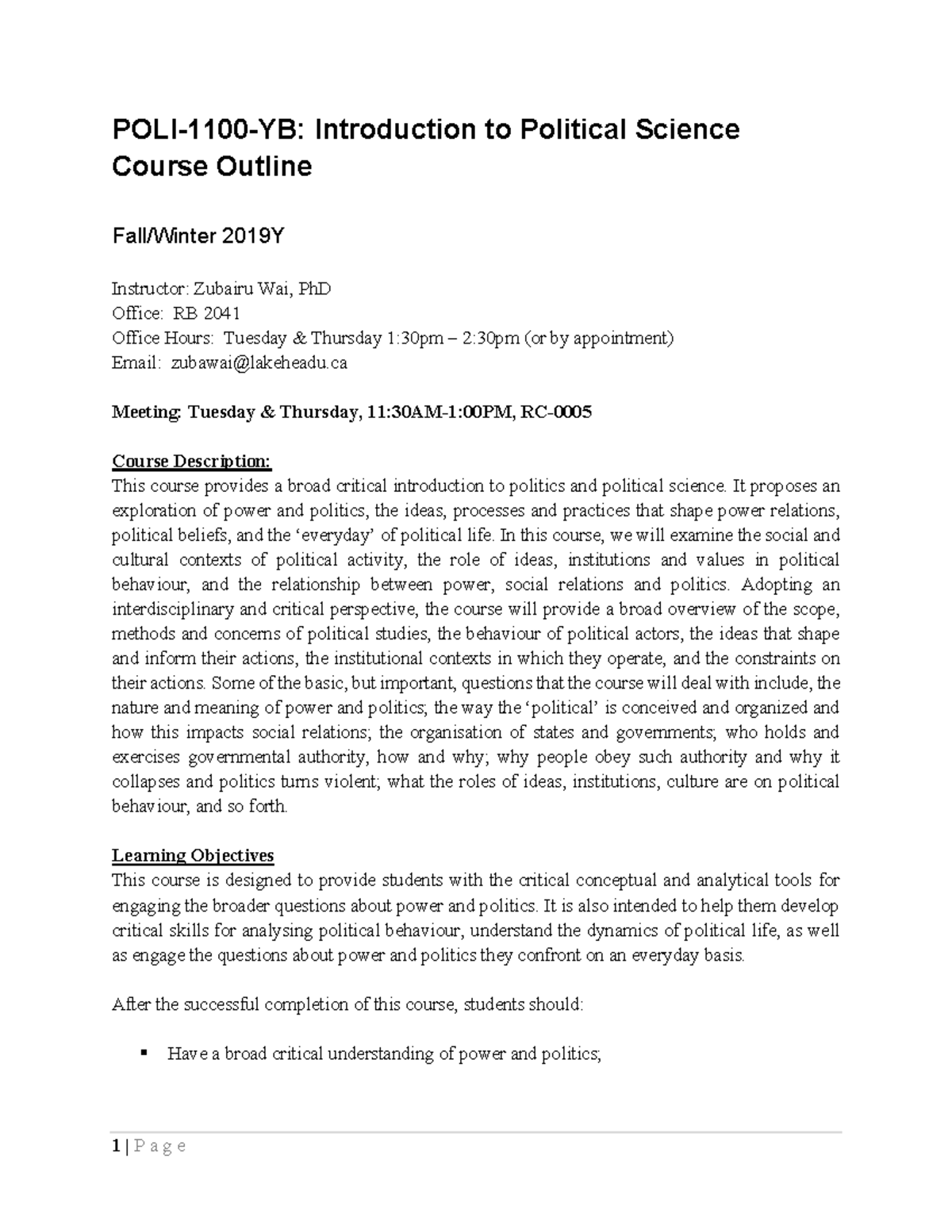 Political Science 1100 video lectures VIDEOS WEEK 1 1 Definitions