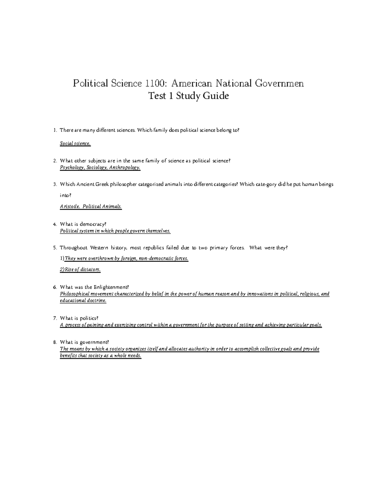 POLS1100 Test 1 Study Guide Political Science 1100 American National