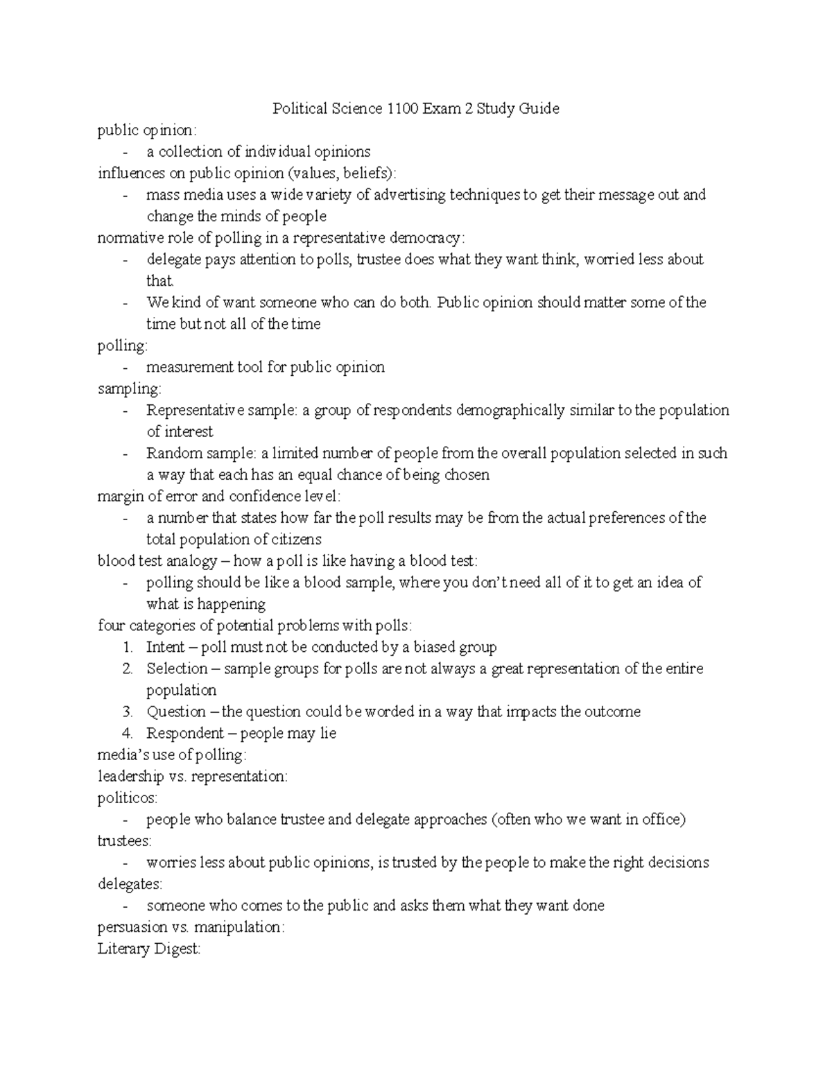 Political Science 1100 Exam 2 Study Guide Political Science 1100 Exam