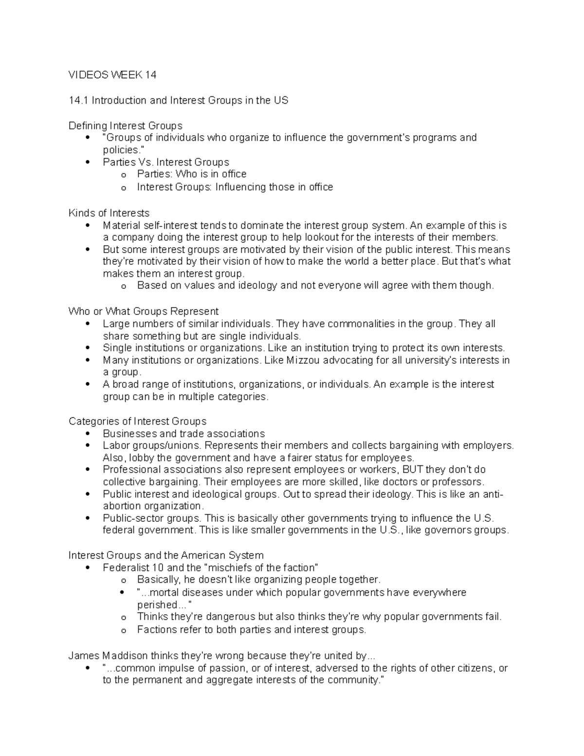 Political Science 1100 part 4 video lectures VIDEOS WEEK 14 14