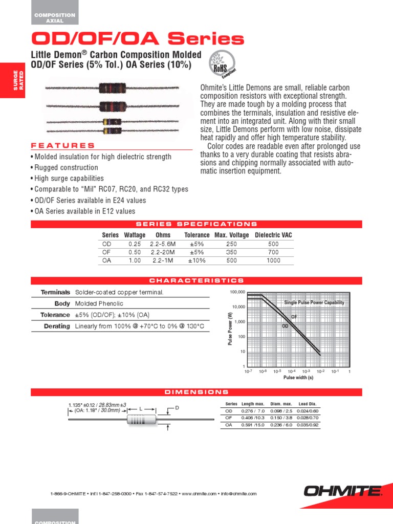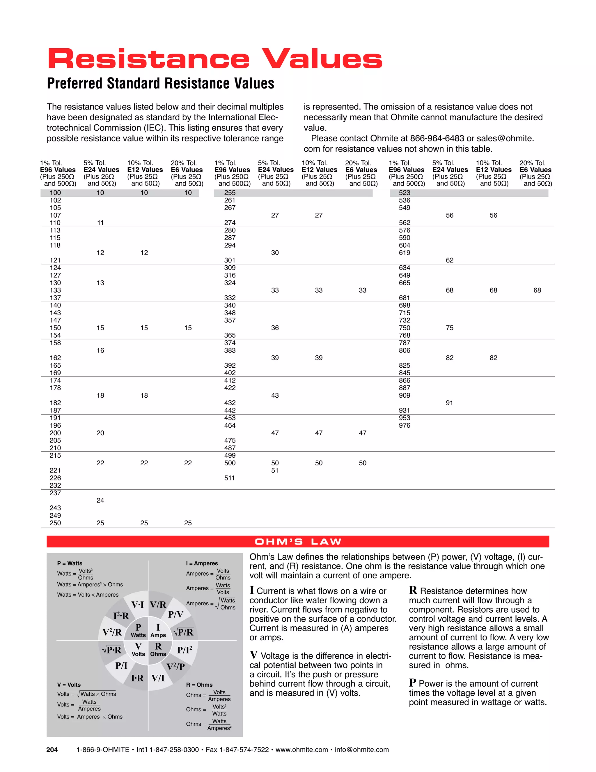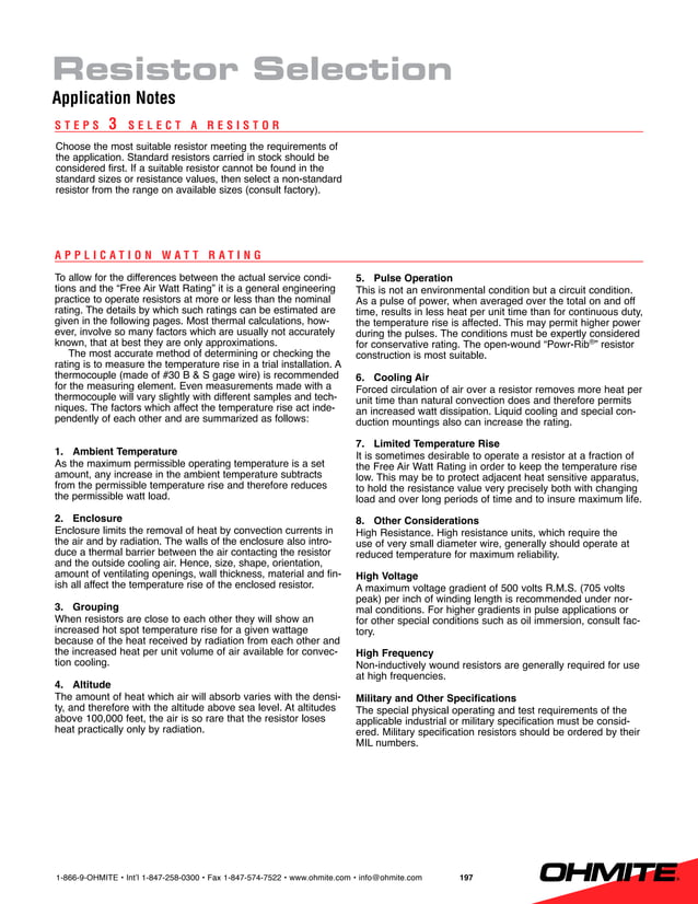 Catalogo de Resistencia Ohmite Resistor Physical Quantities