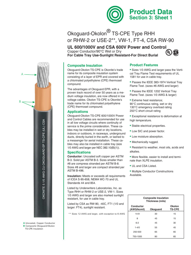 Product Data OkoguardOkolon ® TsCpe Type RHH or RHW2 or USE2, VW1