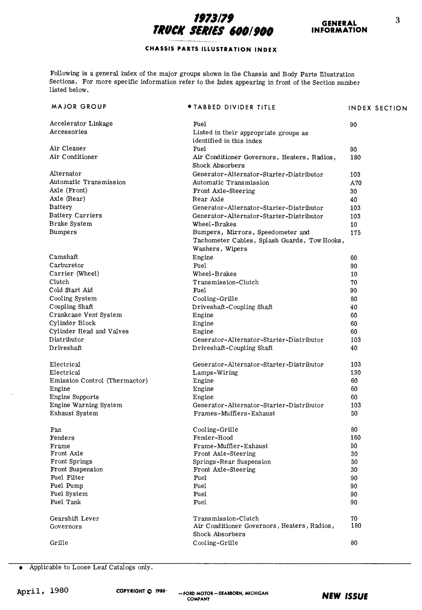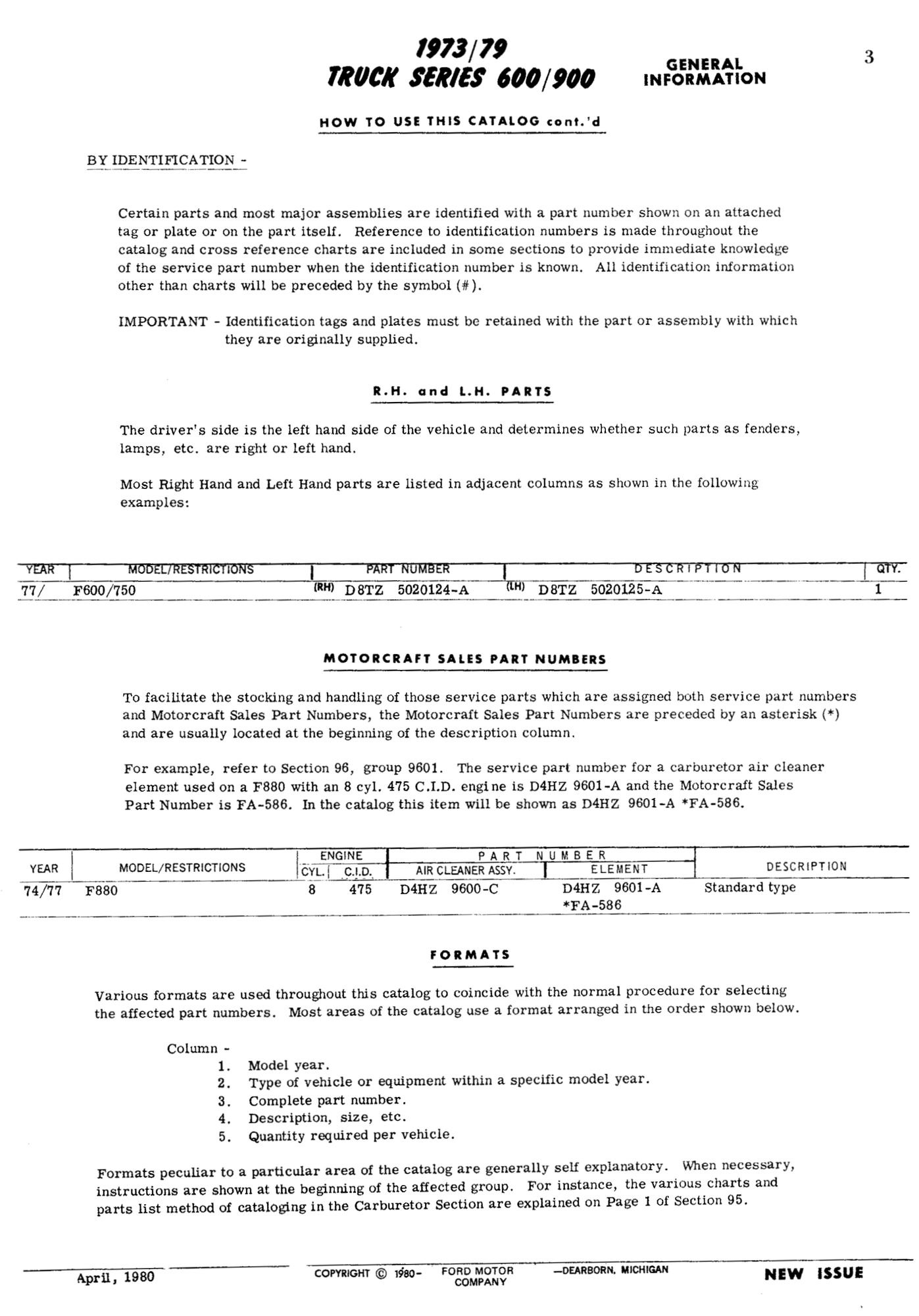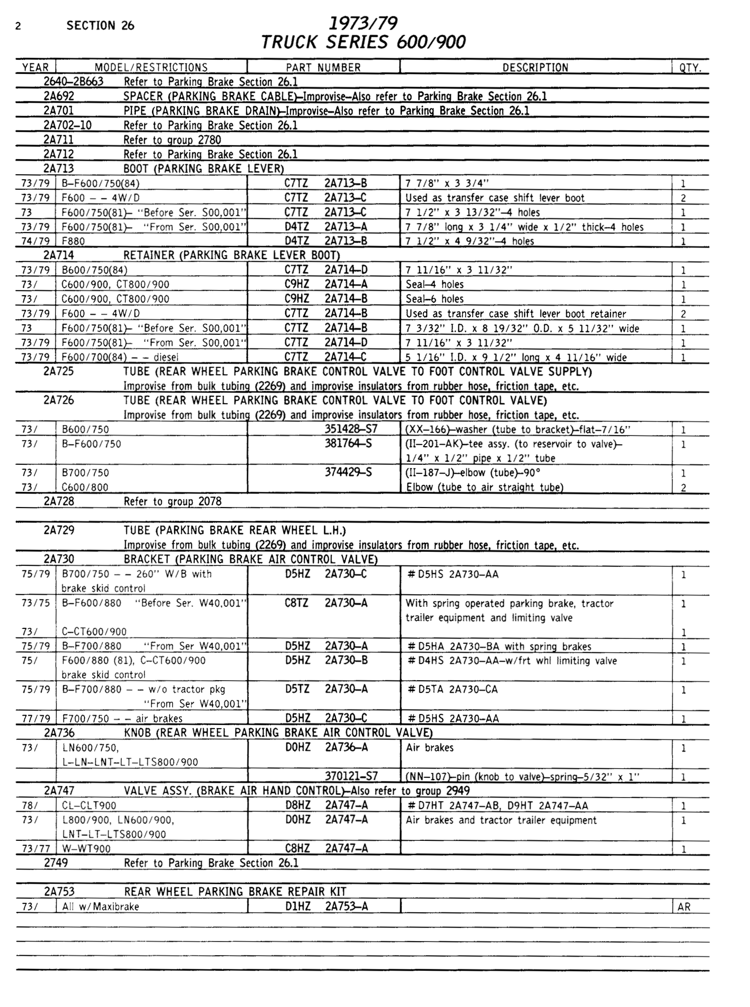 Parts Catalog for 197379 Ford 600900 Series Medium Duty Trucks (F600