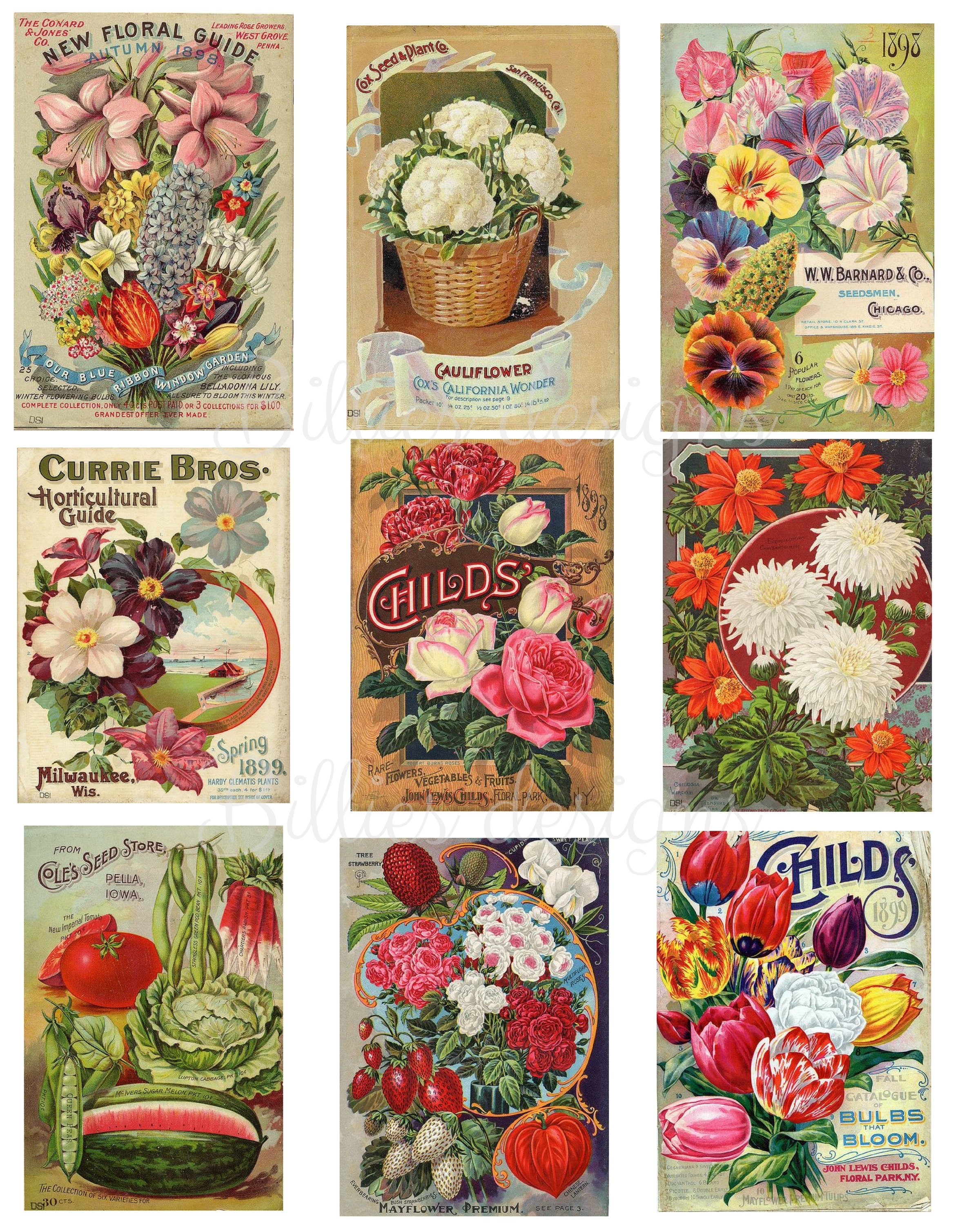 Seed Packet & Antique Seed Catalog Illustrations, 8 Garden Decorations
