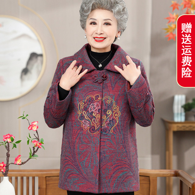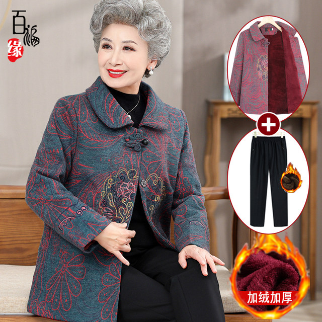 Grandma Spring and Autumn Jacket Elderly, Tang dress plus fluffy woolen