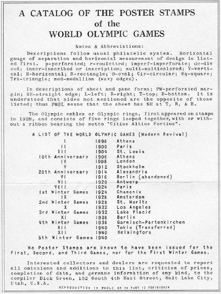 CATALOG OF OLYMPICS LABELS 18941985 AICO