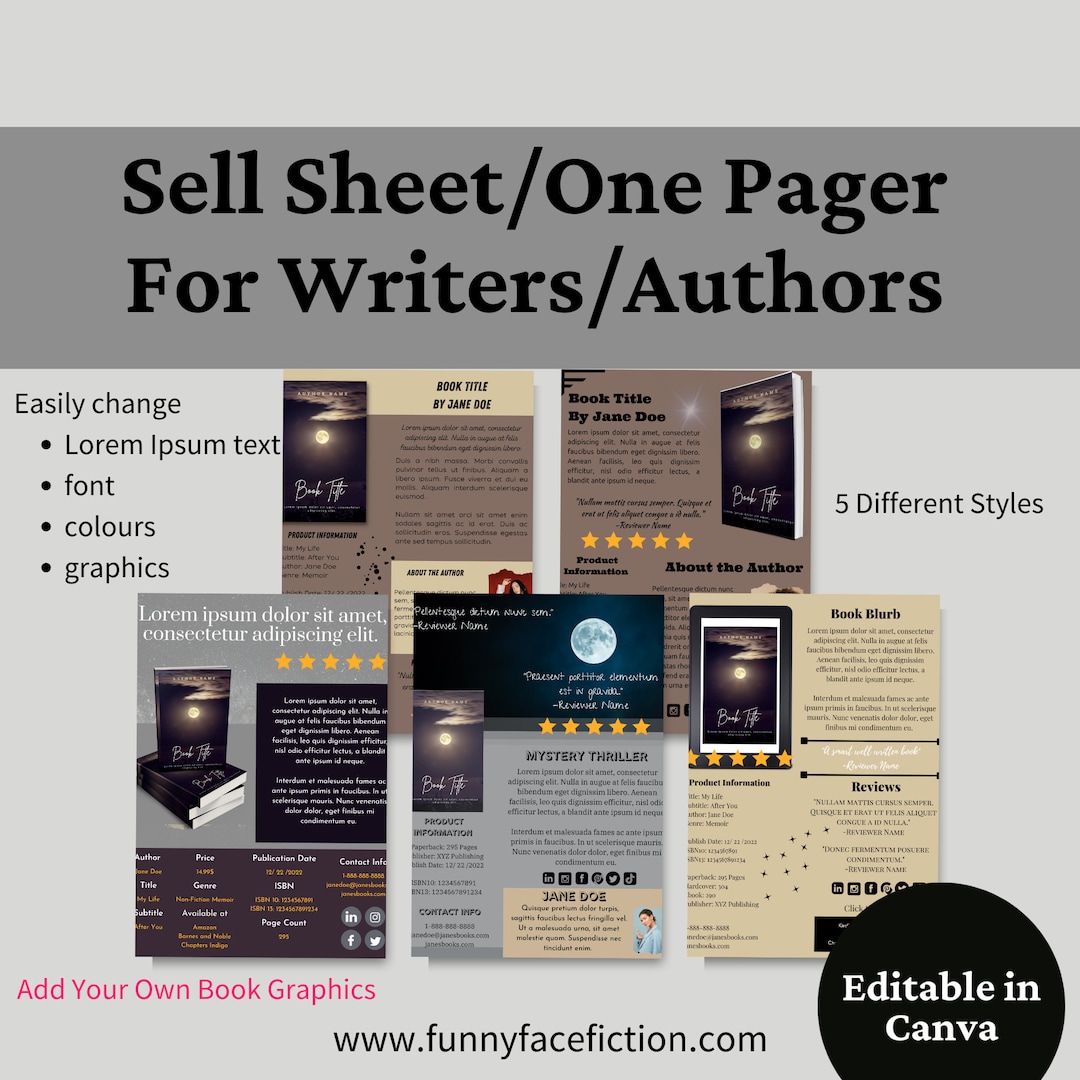 Canva Sell Sheet for Authors, Canva One Pager for Authors, Press Kit
