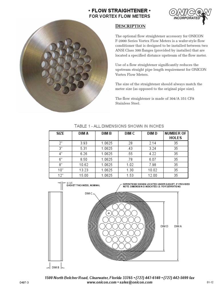 (ONICON) Flow Straightener Catalog Sheet 0112 PDF Pipe (Fluid