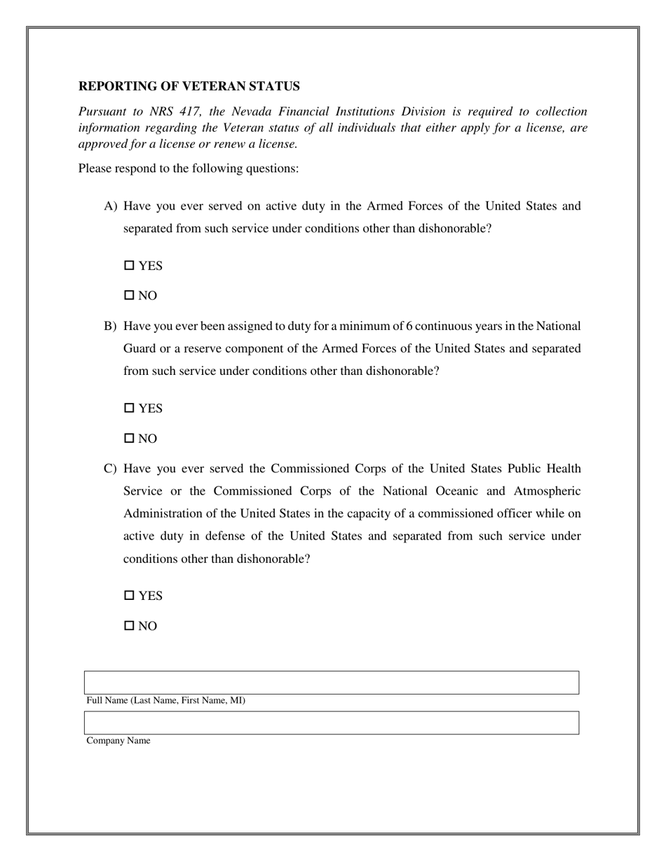 Nevada Reporting of Veteran Status Fill Out, Sign Online and Download