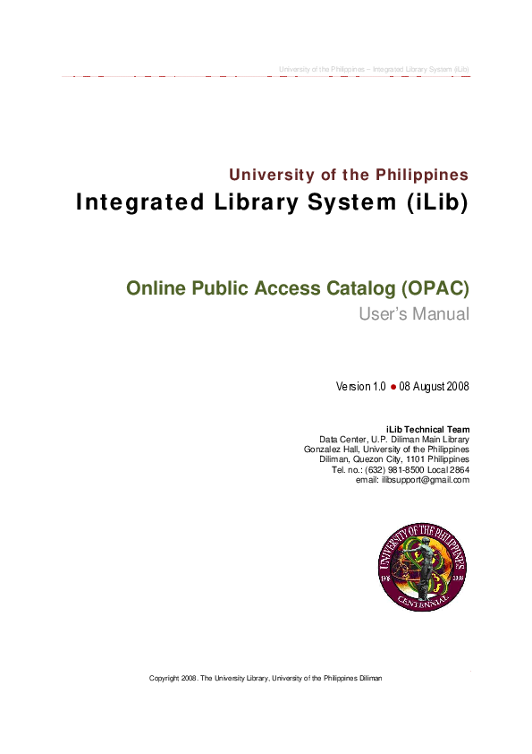 (PDF) Online Public Access Catalog (OPAC) User's Manual