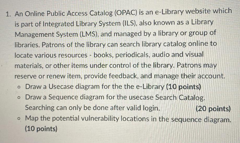 1. An Online Public Access Catalog (OPAC) is an