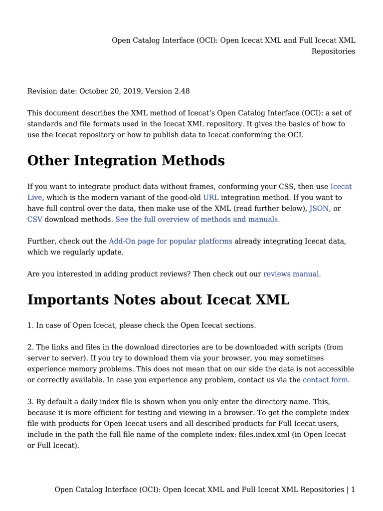 Open Catalog Interface (OCI) Manual for Open Icecat XML and Full