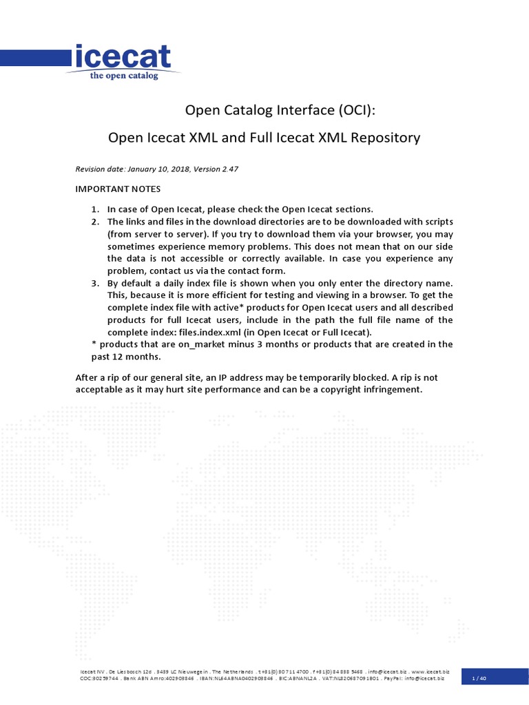 Open Catalog Interface (OCI) Manual for Open Icecat XML and Full