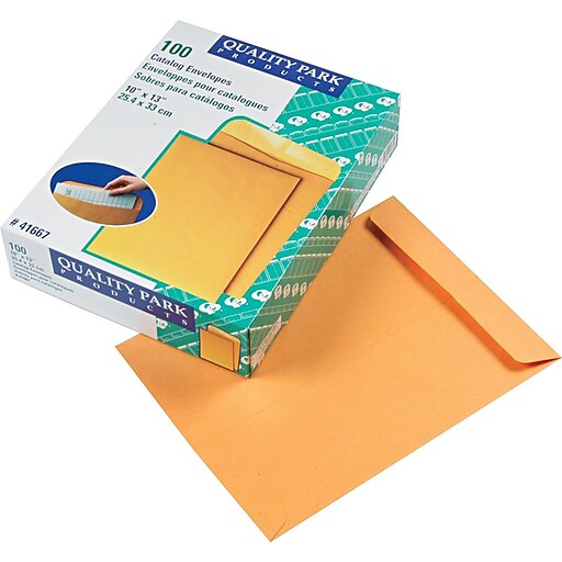 Quality Park Gummed OpenEnd Catalog Envelopes, 10" x 13", Brown, 100