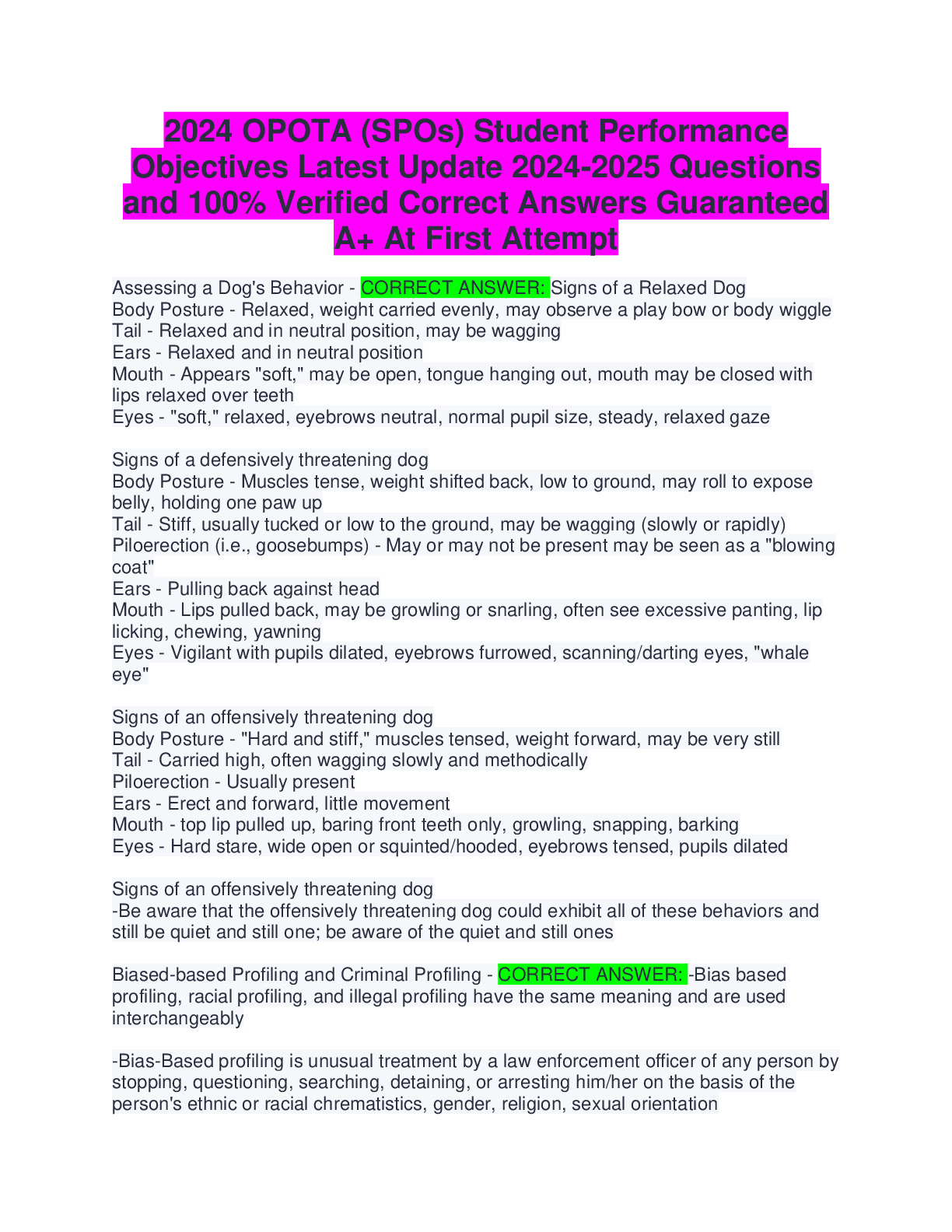 OPOTA Practice Test 2024 OPOTA Stuvia US