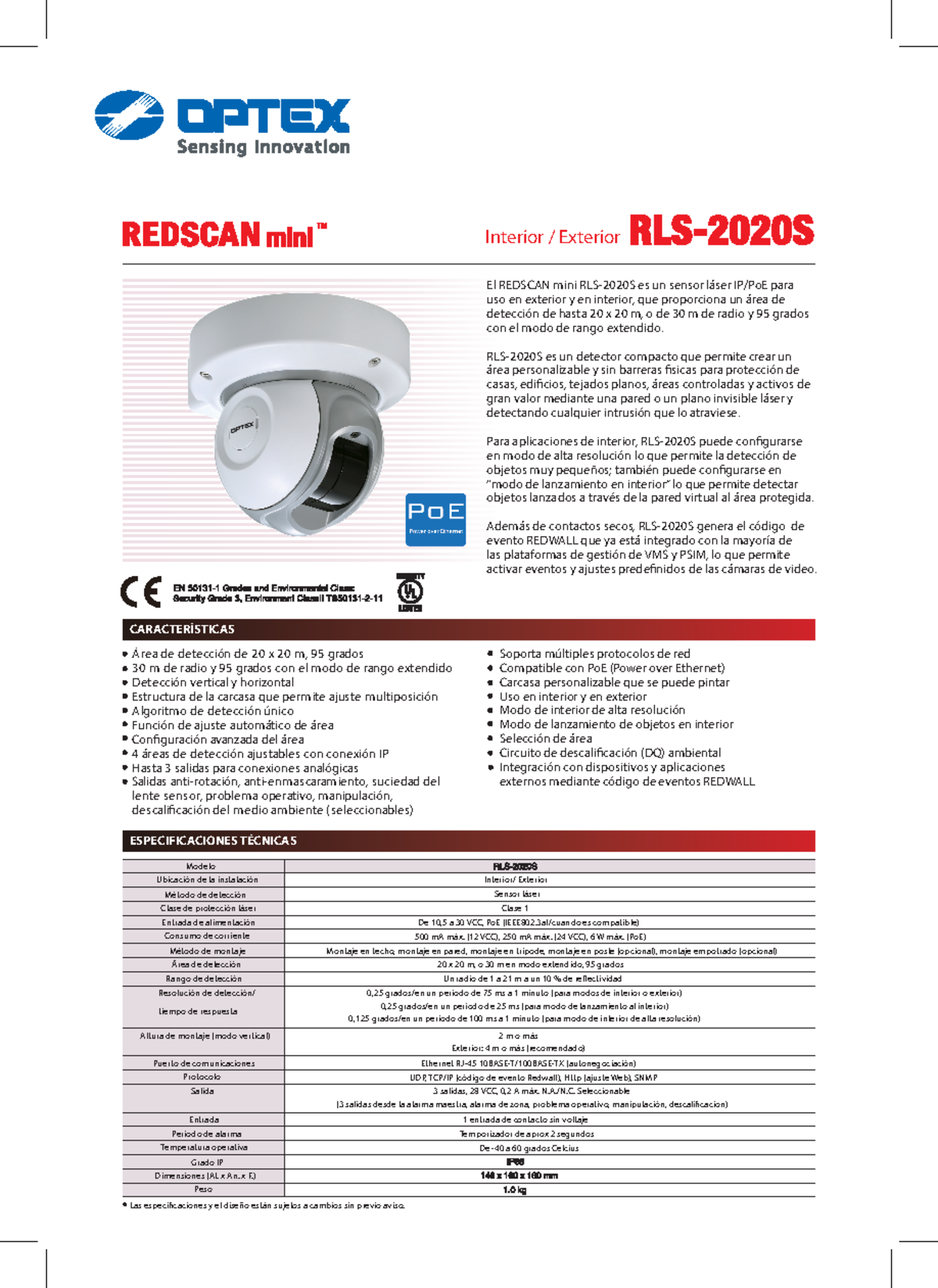 Optexrls2020s ver3 datasheetesprint OPTEX Sensing Innovation TM