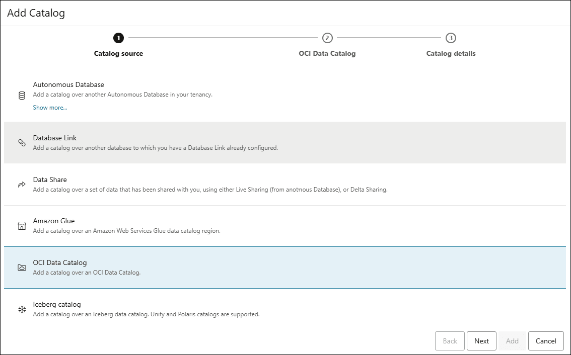 Oracle Cloud Infrastructure Data Catalog DBMS Tools