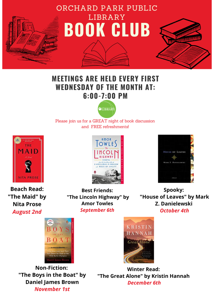 Orchard Park Book Club at Orchard Park LibraryApril 2, 2025 Orchard