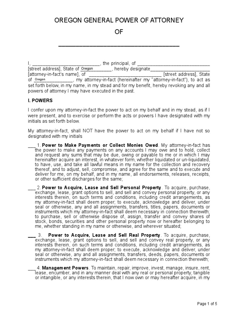 Download Oregon General Power of Attorney Template » Oregon Documents