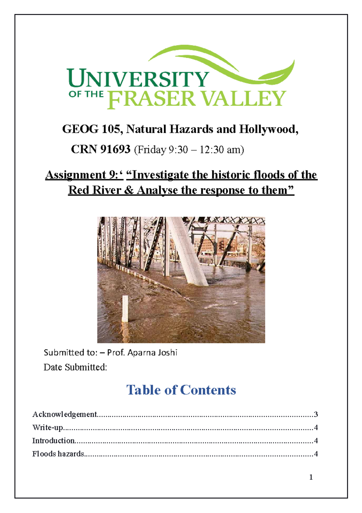 A 9 Geog assignment 9 GEOG 105, Natural Hazards and Hollywood, CRN
