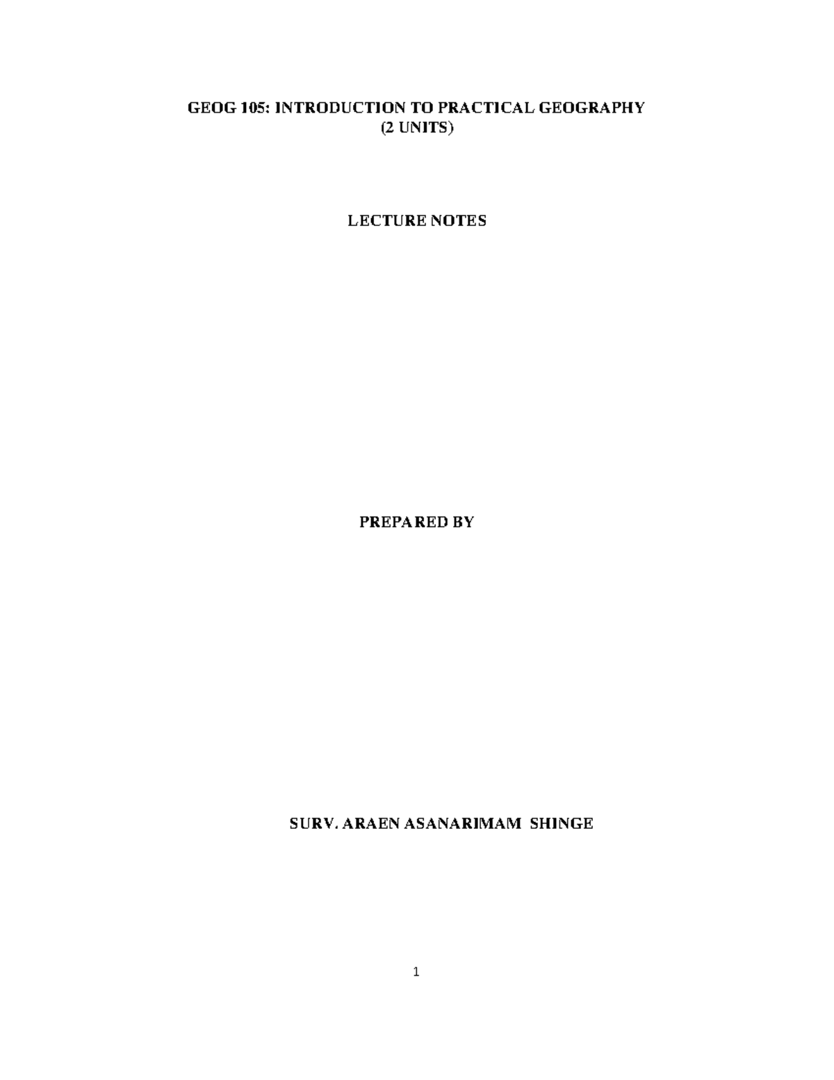 (PDF) GEOG 105 INTRODUCTION TO PRACTICAL GEOGRAPHY (2 UNITS) LECTURE