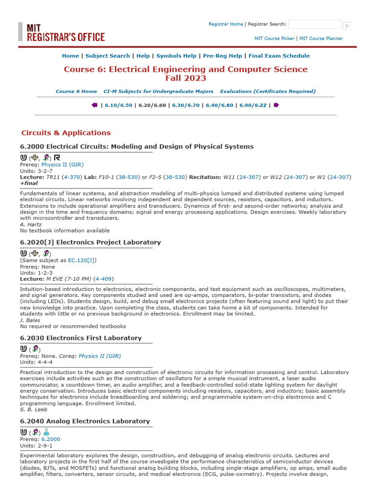 MIT EECS Course Catalog Fall 2023 PDF Photonics Optics