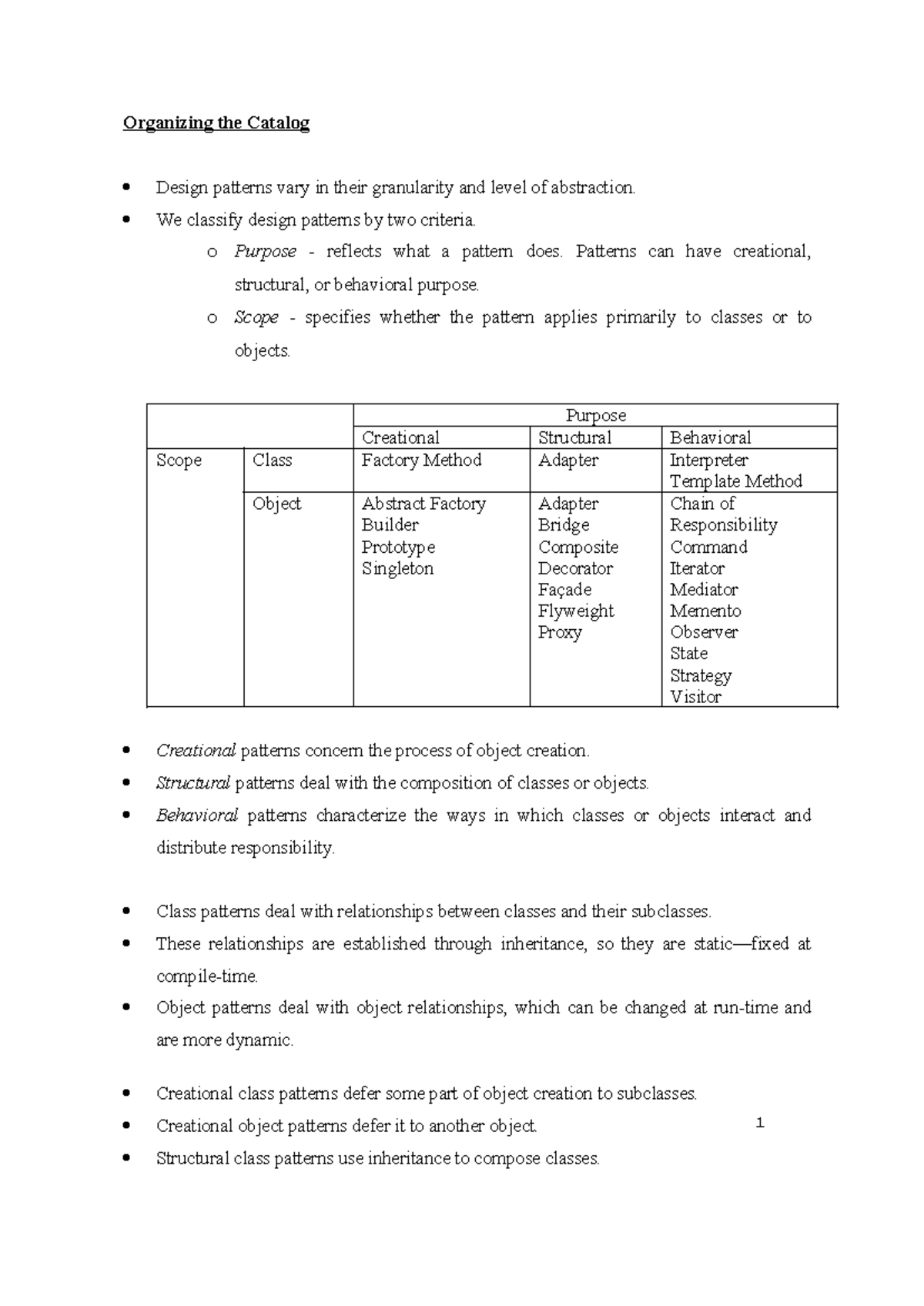 1.5 Organizing the Catalog 1 Organizing the Catalog Design patterns