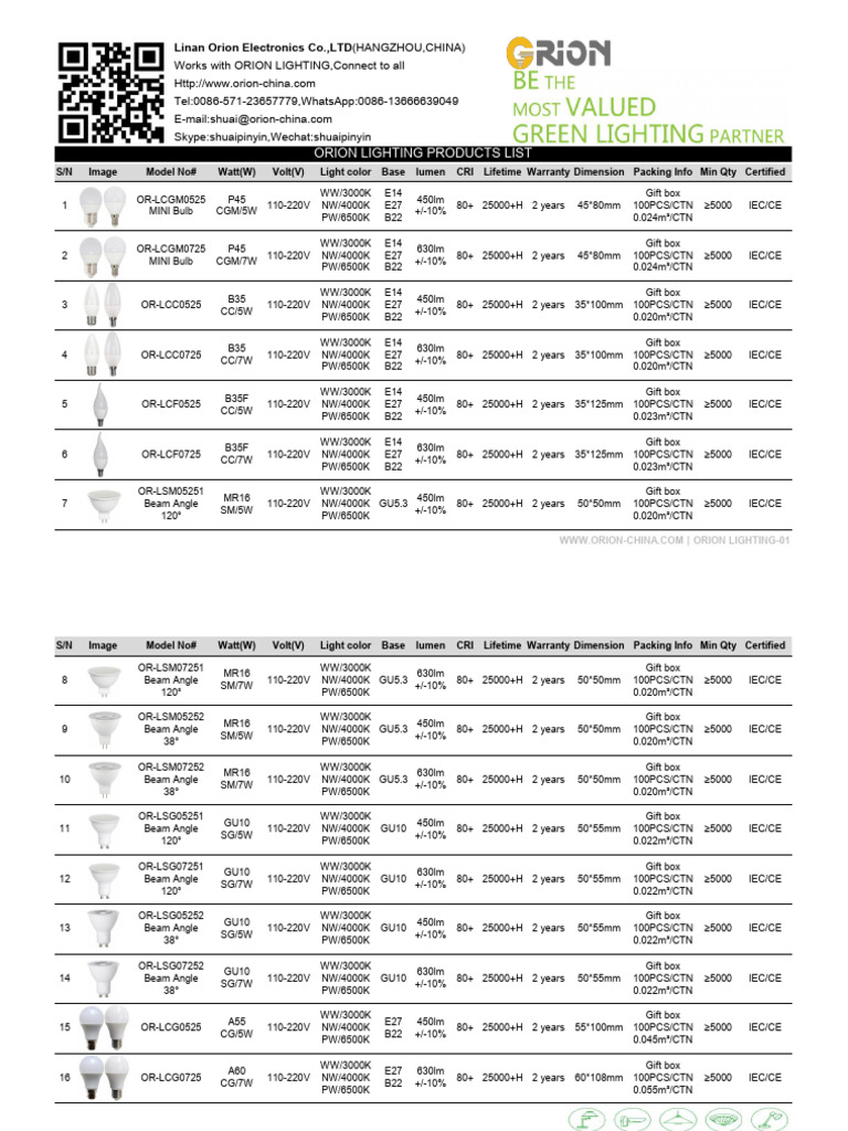 Orion Lighting Products ListOr241123 PDF Components Quantity