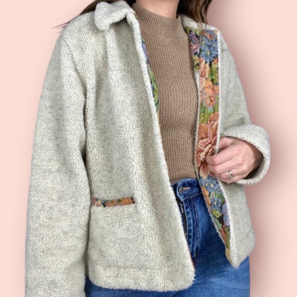 Orvis Jackets & Coats Orvis Vintage Faux Sherpa Floral Tapestry
