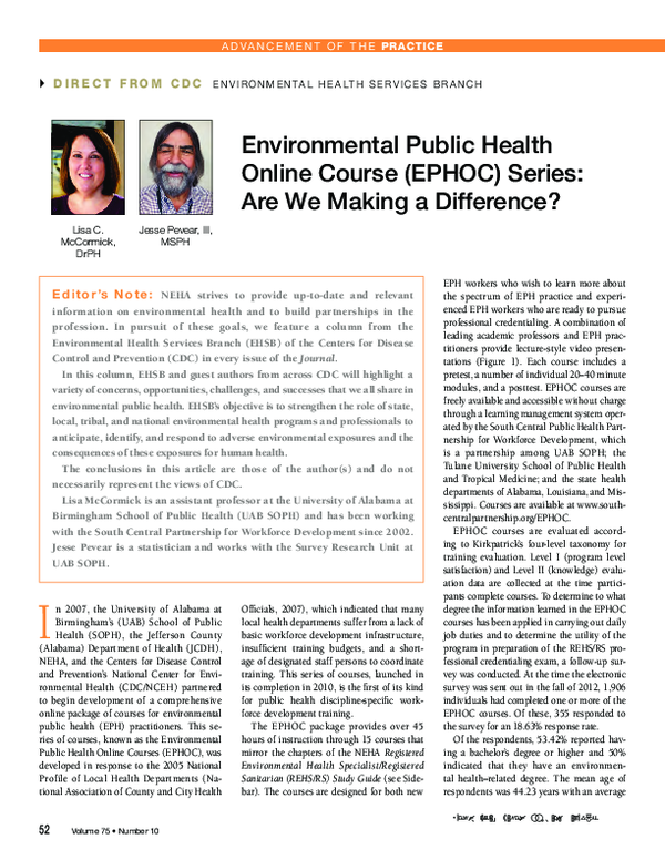 (PDF) Environmental Public Health Online Course (EPHOC) series Are we