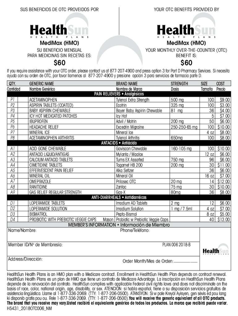 Fillable Online 2018 OTC Order Form 006 English & Spanish. Accessible