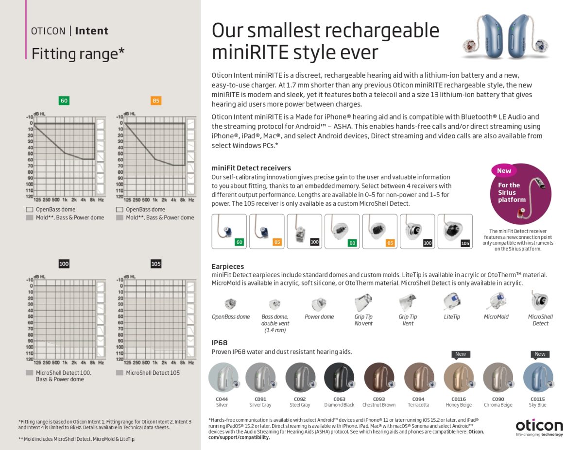 Oticon Intent 1 mini RITE Power 64 channel (Single Ear) Rechargeable