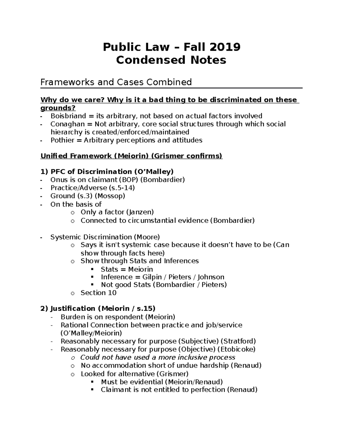 Public Fall N/A Public Law Fall 2019 Condensed Notes Frameworks