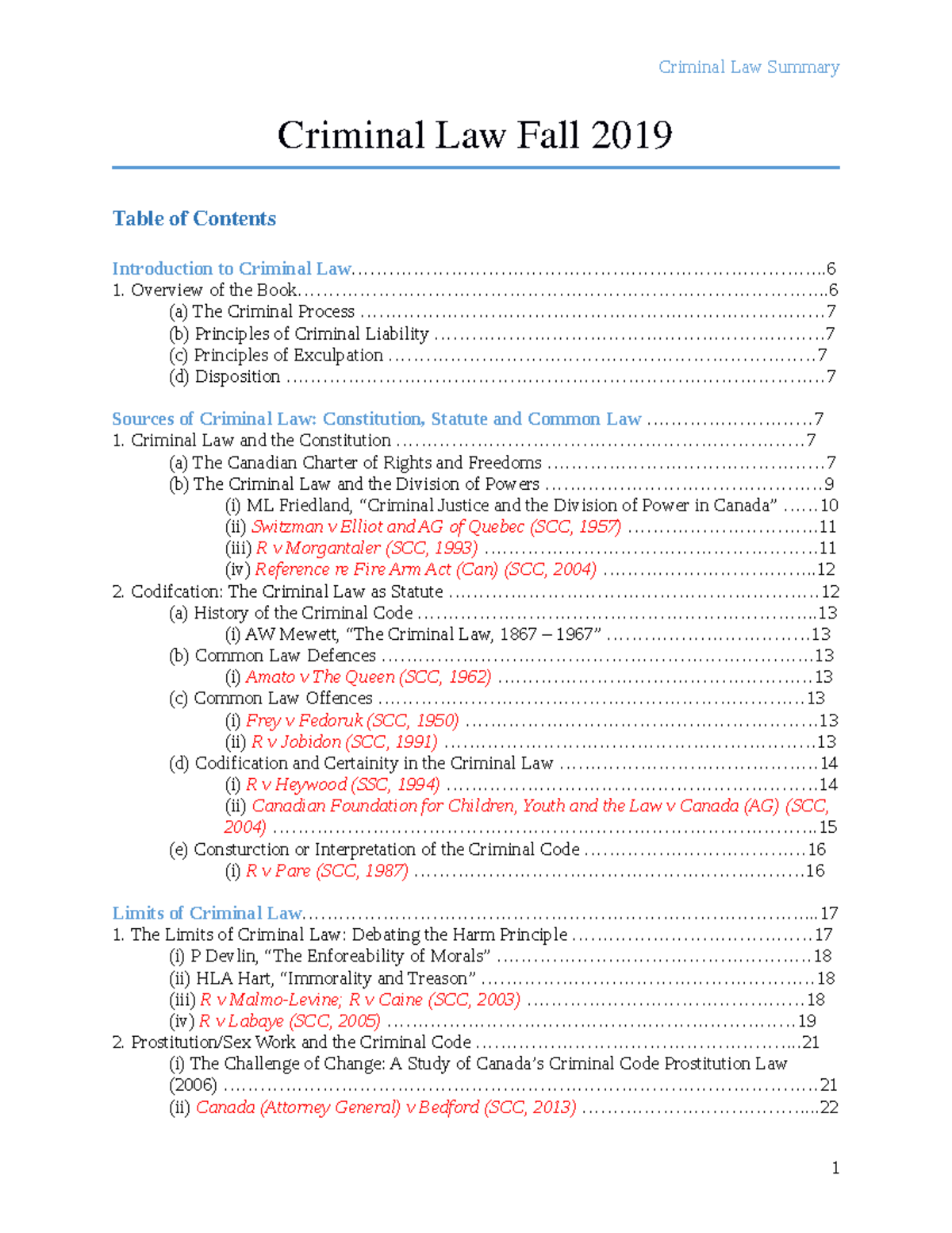 Criminal Law Fall 2019 Summary 38 TableofContents CriminalLawFall