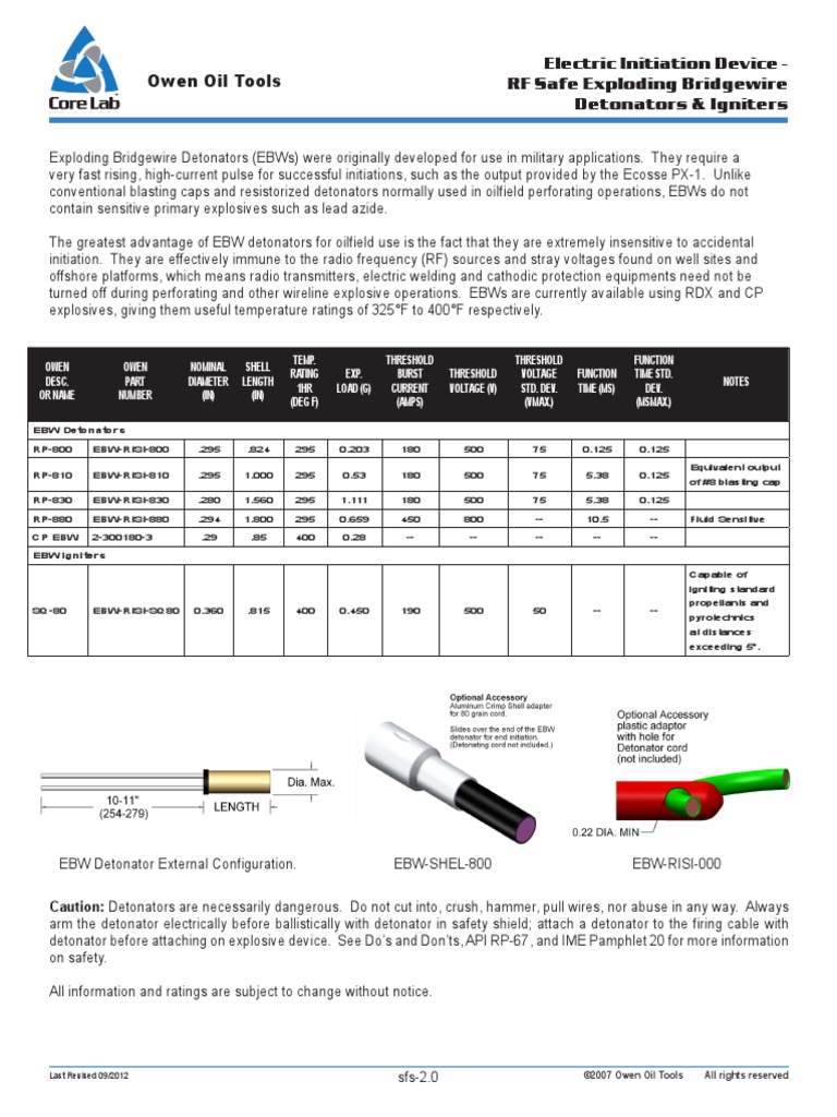 Owen Oil Tools Electric Initiation Device RF Safe Exploding