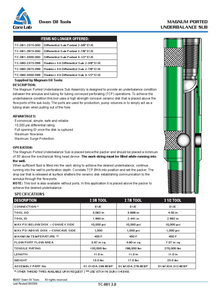 Description Magnum Ported Underbalance Sub Owen Oil Tools PDF