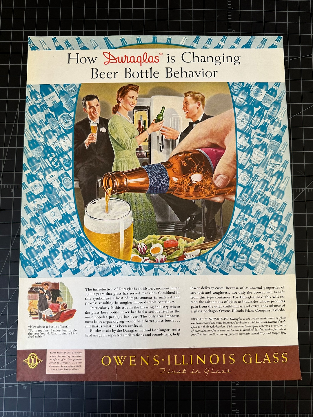 Vintage 1940s Owensillinois Glass Beer Bottles Print Advertisement