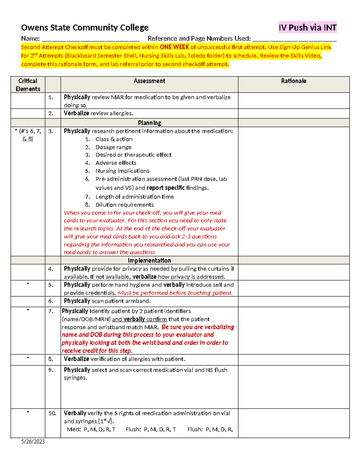 IVP via INT Revised IVP Owens State Community College IV Push via