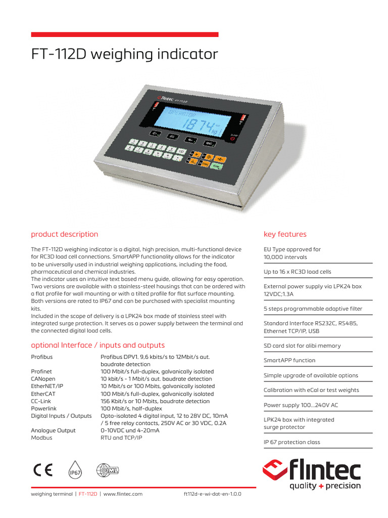 德国flintec FT112D数字称重显示器广州锐拓自动化科技有限公司