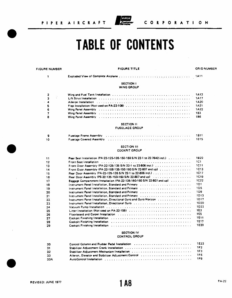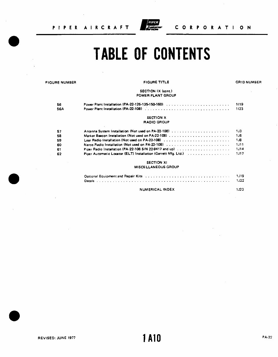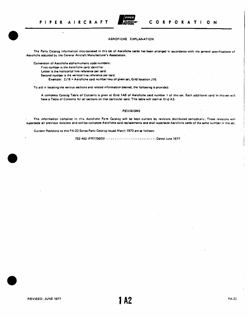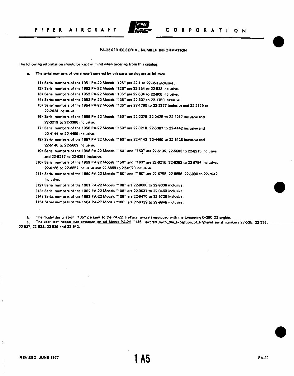 22PM PIPER PA22 PARTS MANUAL Univair Aircraft Corporation