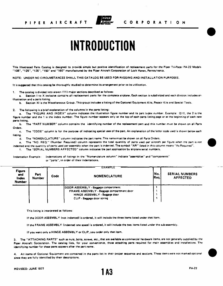 Piper Tri Pacer PA22 Parts Catalog Manual Manuals Online